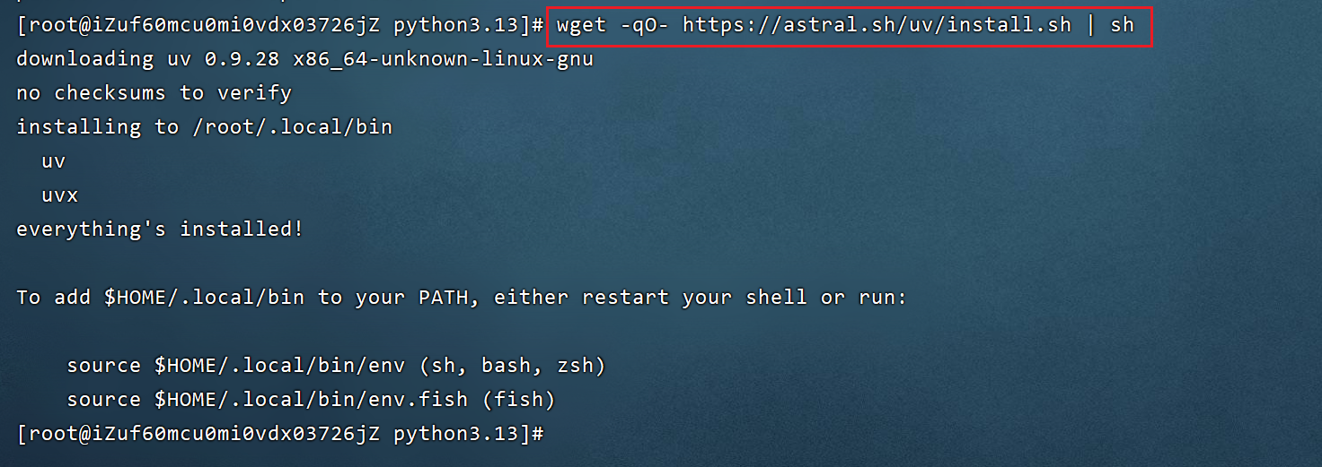 pyenv local 3.13curl -LsSf https://astral.sh/uv/install.sh | sh如果报错:curl: (16) Error in the HTTP2 framing layer